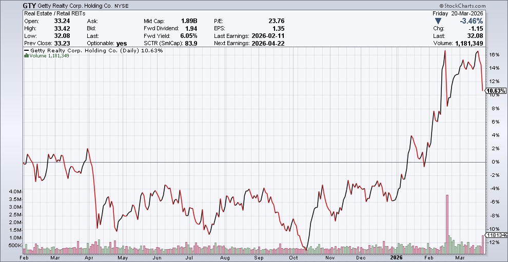 O Getty Realty Corp. (GTY) é um REIT (Real Estate Investment Trust) especializado em propriedades net lease (aluguel líquido, onde o inquilino paga a maioria das despesas), focado principalmente em conveniência stores (postos de gasolina e lojas de conveniência), automotivo (centros de serviço automotivo) e outros varejos single-tenant de varejo.