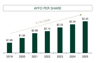 Getty Realty Corp – GTY relatou um crescimento de quase 12% no aluguel base anualizado para 2025, com AFFO por ação um aumento de 5% para o quarto trimestre e 3,8% para o ano inteiro.