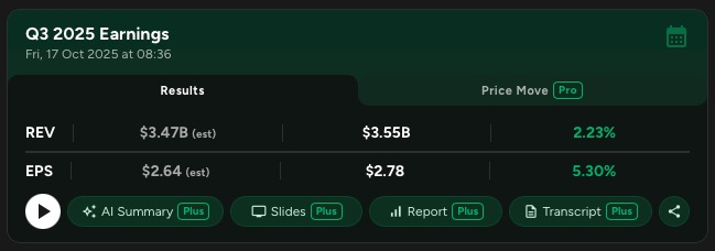 A State Street Corporation reportou resultados sólidos no 3T25, com EPS de US$ 2,78 (crescimento de 23% A/A), receita total de US$ 3,55 bilhões (crescimento de 9% A/A) e receita de taxas de 8% (US$ 2,8 bilhões).