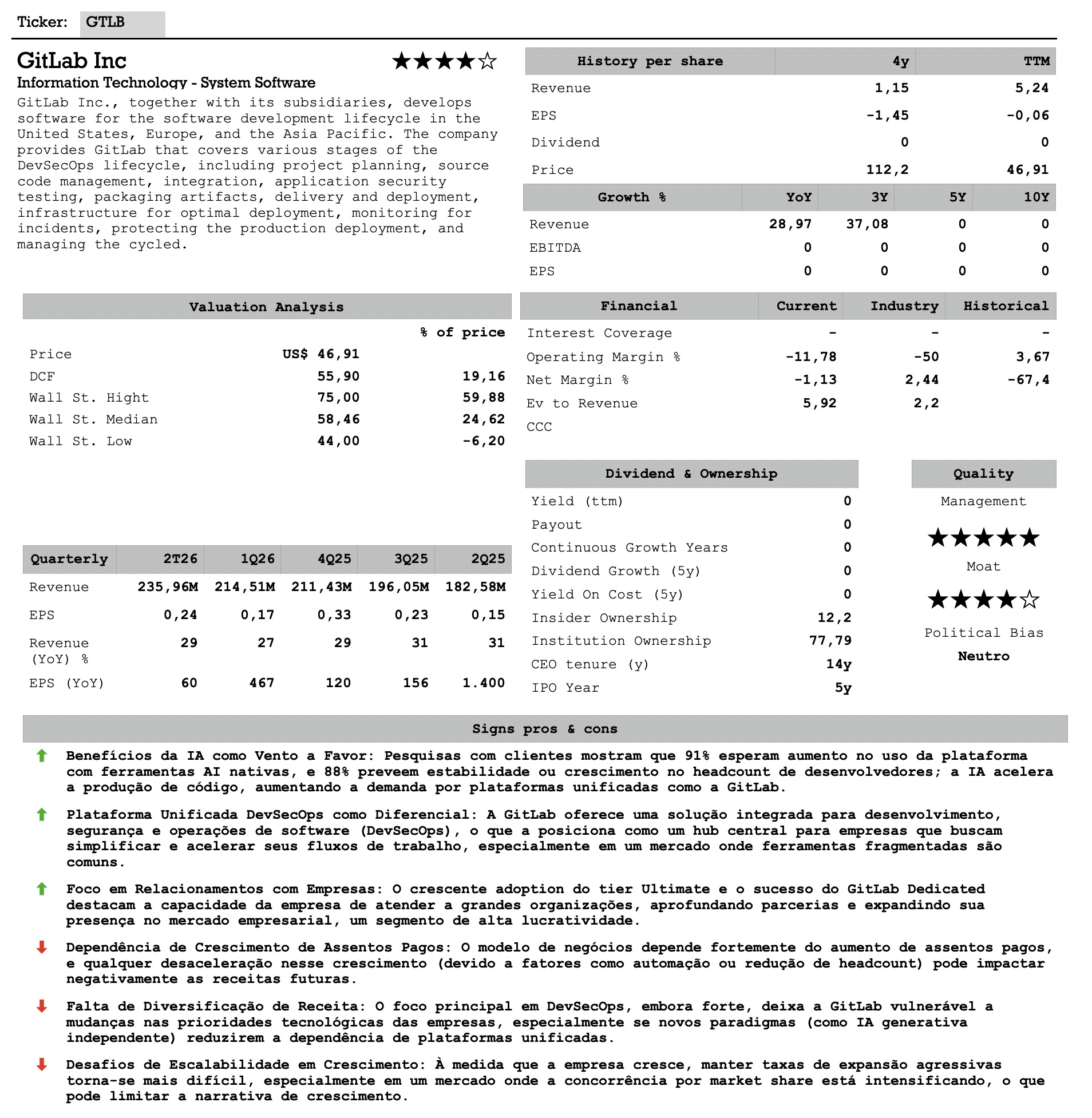 Vamos trazer o balanço comentado da Gitlab Inc – GTLB. A empresa especializada em servidores com plataforma DevSecOps. Integrando segurança e eficiência em todo o ciclo de desenvolvimento de um software. Em resumo a GitLab ajuda as empresas a desenvolver, proteger e implantar seu software.