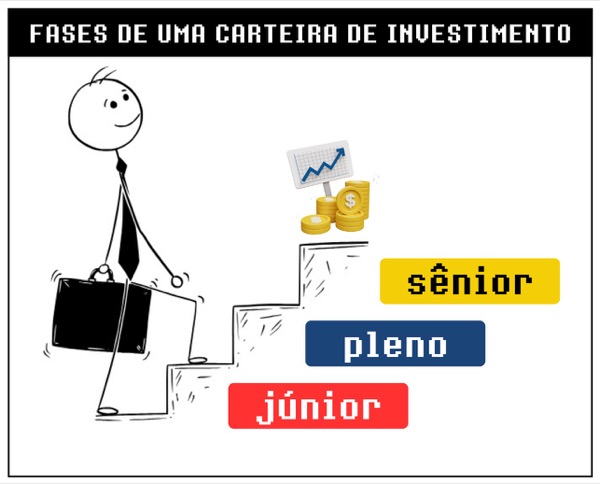 Esse investidor precisará se dedicar a três etapas para construir sua estratégia de forma sólida. Dividi essas etapas em três fases: júnior, pleno e sênior. Esses termos foram inspirados na área de Tecnologia da Informação, onde programadores são classificados nessas categorias.