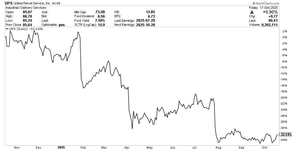 Esses ventos contrários ainda não passaram completamente, impactando a cotação da empresa. No último ano, a UPS registrou uma queda de 32%, tornando-se o pior ativo da nossa carteira pública, com um retorno negativo de -46% até o momento.