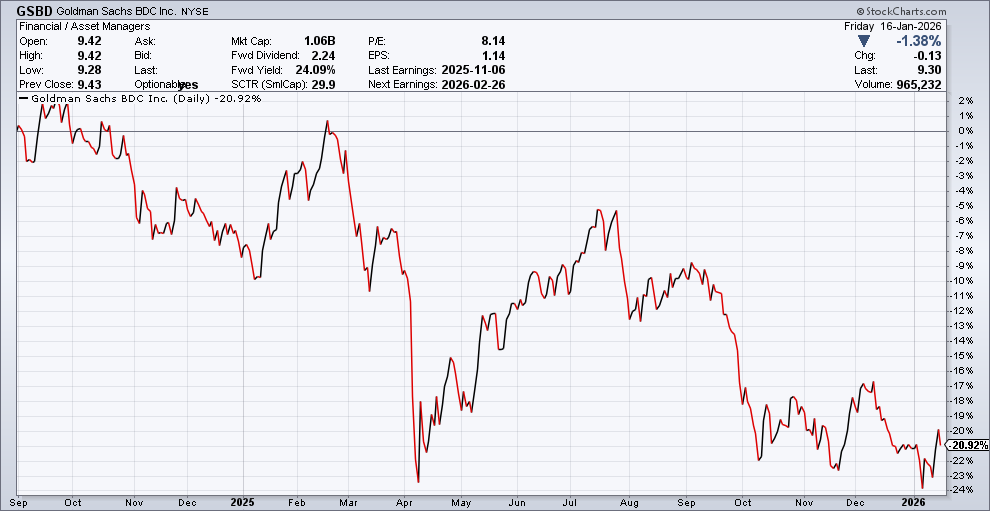 Esse mês passado liquidei minha posição na GSBD – Goldman Sachs BDC. Ela se tornou a primeira Business Development Company – BDC a ser retirada da nossa carteira.
